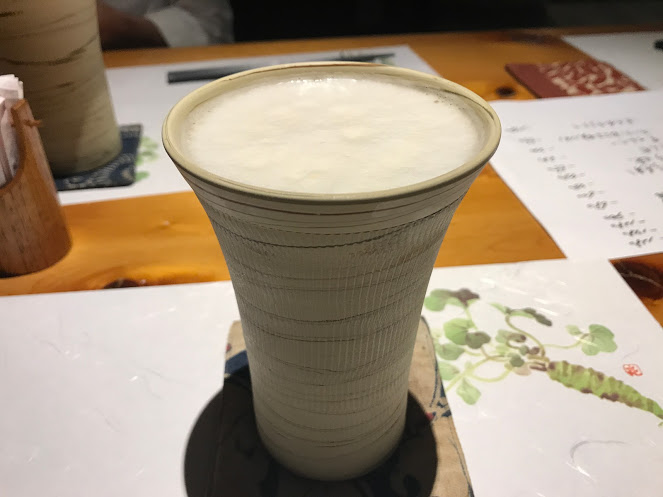 ビールの泡をクリーミィーにする陶器のグラスで登場。