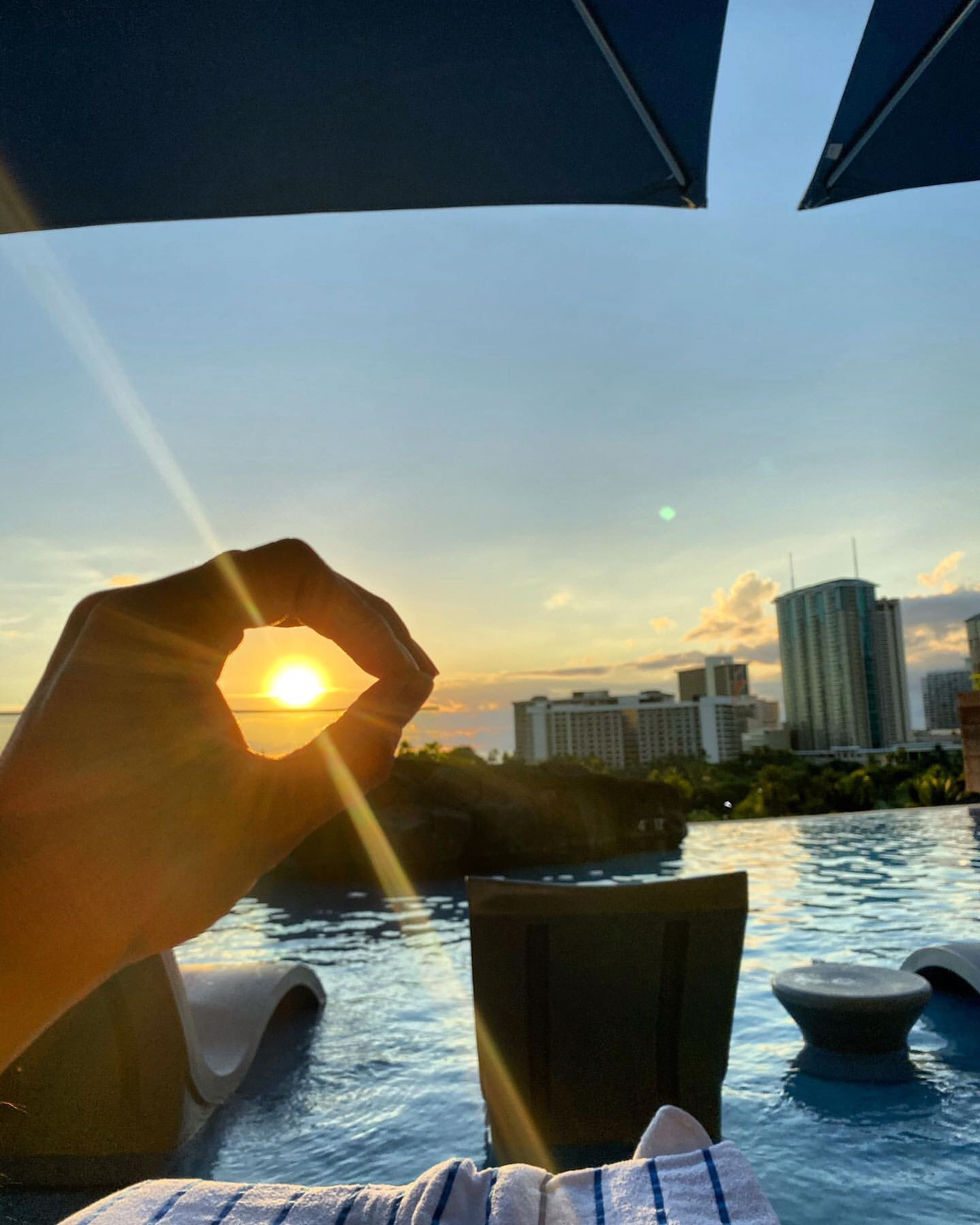 ホテルのプールからsunset。