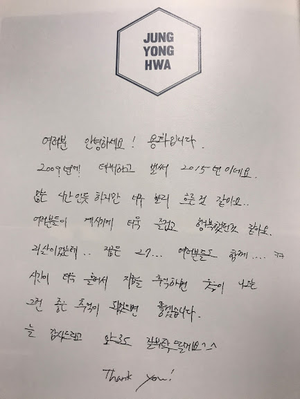 ヨンファのメッセージ。