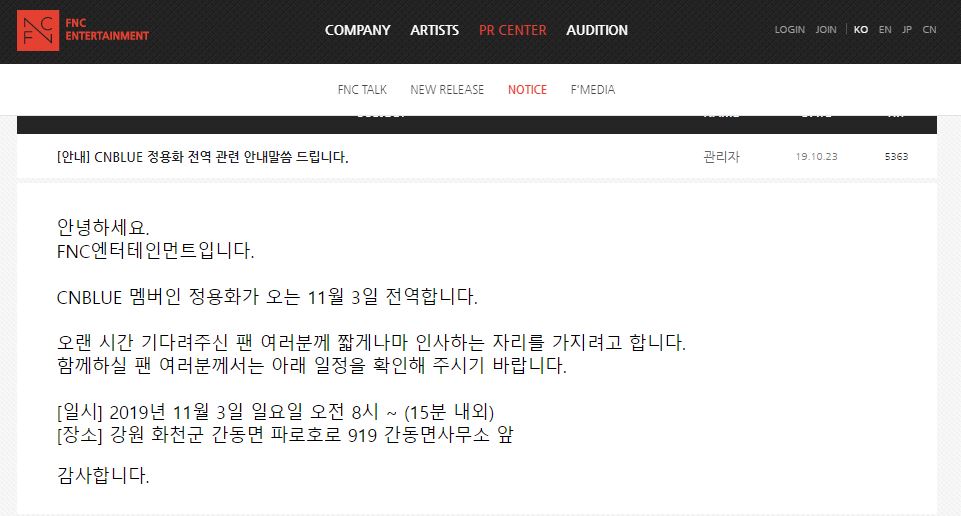 CNヨンファ、11月3日に除隊…「待ってくれたファンにあいさつする」