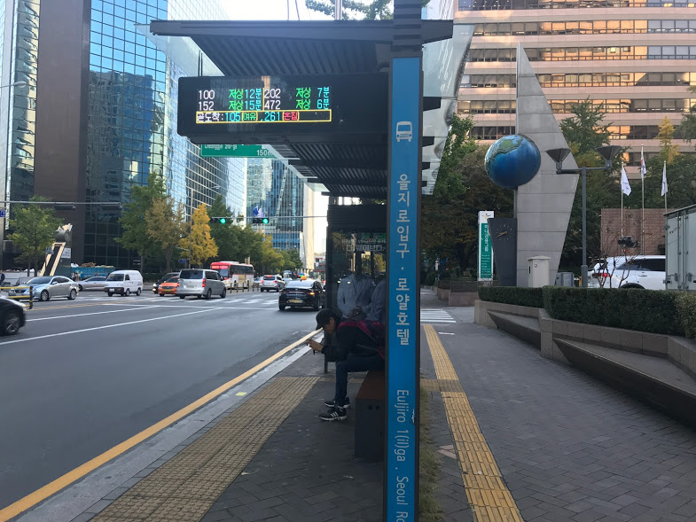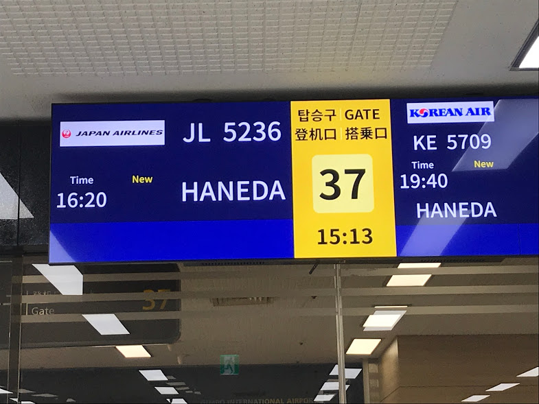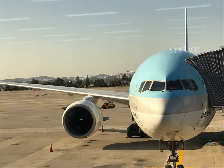 金浦空港いつものベンチでキンパを食べて過ごします。