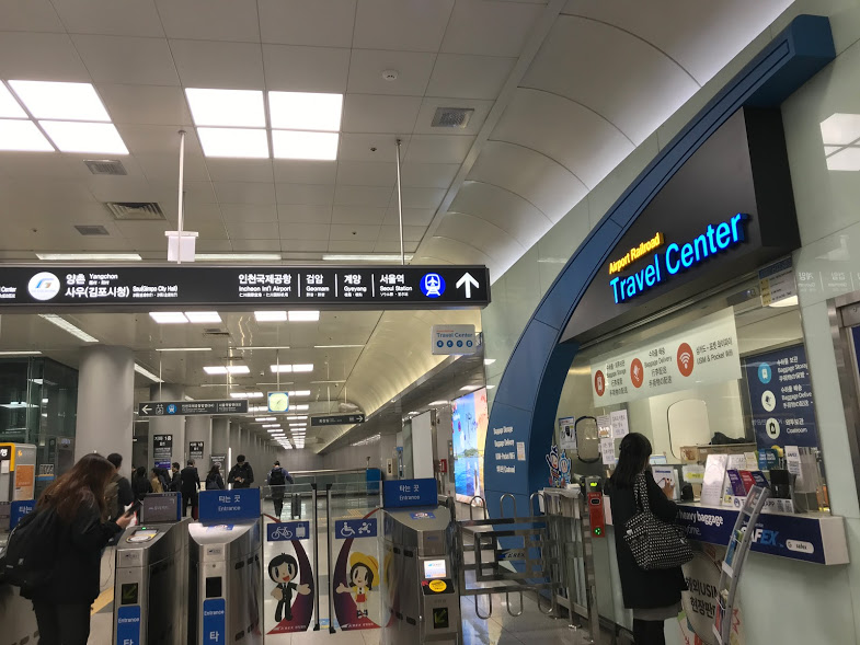 スーツケースは、 空港鉄道「金浦国際空港」駅4番出口付近「トラベルセンター」で受け取ります。