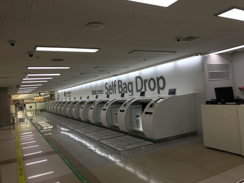 初めて利用した、セルフバッグドロップ(自動手荷物預け機)。