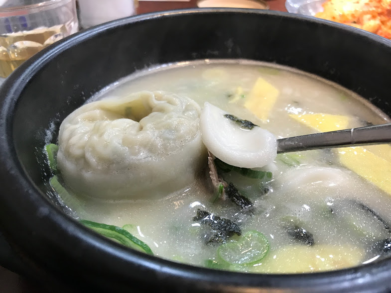 トック(お餅)入りのソルロンタンを2つ頼んだつもりが、餃子も入っているスペシャル版をうっかりオーダーしていました。