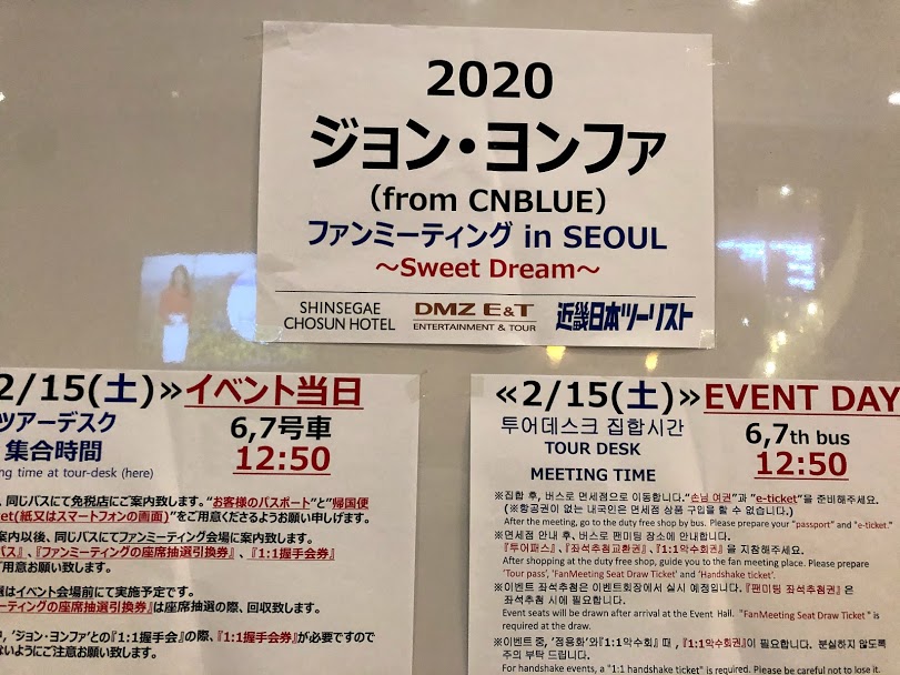 <2020 ジョン・ヨンファ(from CNBLUE) ファンミーティング in SEOUL ~ Sweet Dream ~>に参加するため2020年2月14日~16日まで韓国へ行ってきました。