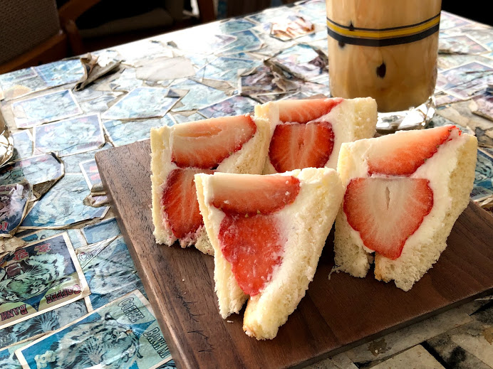 乙支路(ウルチロ)4街のホランイコーヒー(호랑이커피)のイチゴのサンドイッチ。