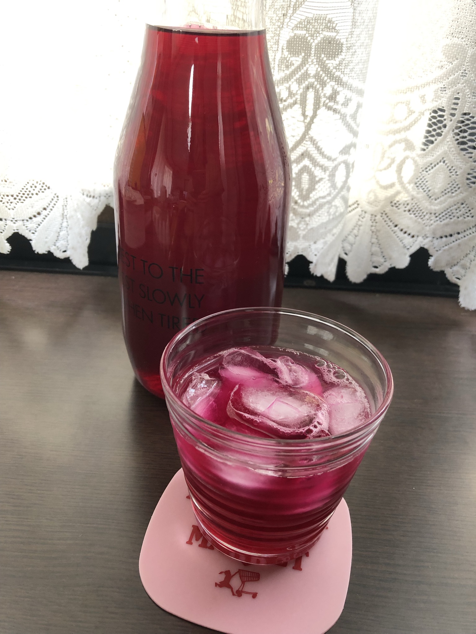 材料は赤しそ、水、砂糖(ラカント使用)、リンゴ酢