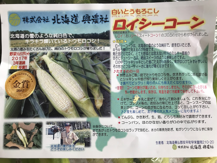 白くて、甘いとうもろこしは8月中旬に届きました。