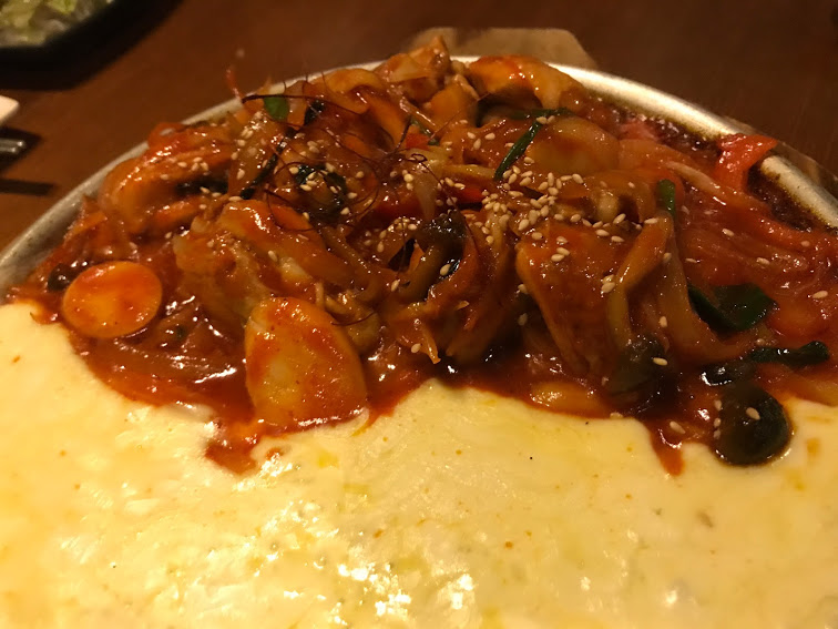 韓国で食べた初めてのチーズダッカルビも甘口を頼んだのに辛かった。