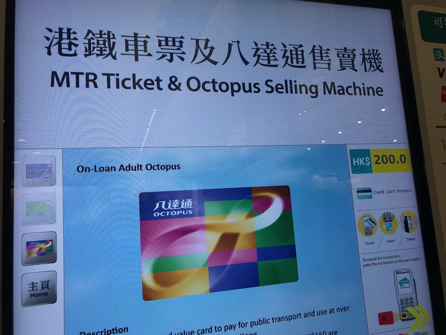 受け取り時間が09:00~だったので、私たちは空港のオクトパスカードの自販機でクレジットカードで購入しました。