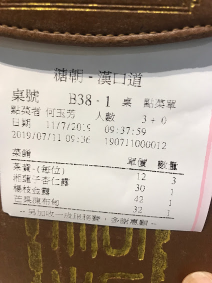 飲茶のお茶代 12HKD(約166円)がかかっています。