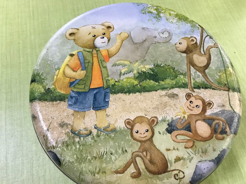 クッキー缶の熊さんのデザインが月ごとに変わるそうで、今はこんなデザインなのかな。