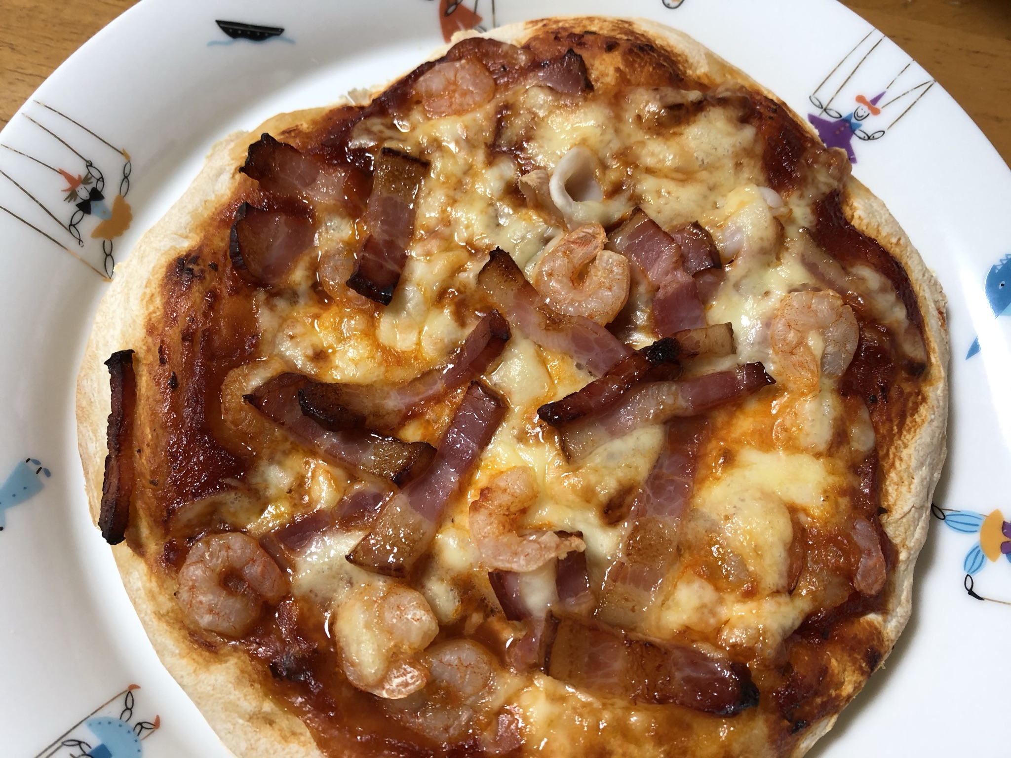 海老とベーコンのピザ