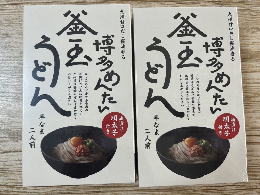 クール便とは別便で届いたのがふくやの九州甘口だし醤油香る「博多めんたい釜玉うどん」。