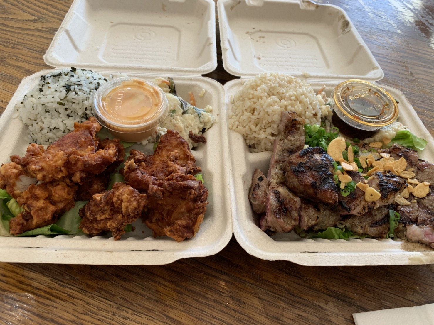 モチコチキンとリブアイステーキ。
